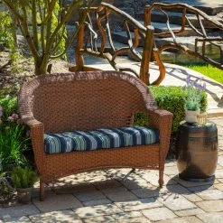 Best deal 👏 Arden Selections ProFoam 18 X 46 In Outdoor Bench Cushion Sapphire Aurora Blue Stripe 🤩