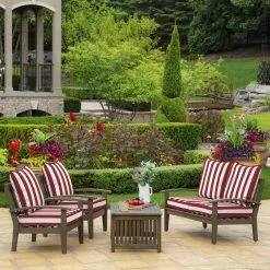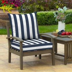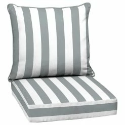 This two-piece cushion set will make your patio chair more comfortable than ever. The high-quality EverLuxe polyester fiber fill provides unmatched support and springy cushioning for comfortable outdoor lounging. Choose from various striped color options for a beach, cabana vibe.