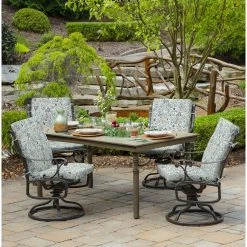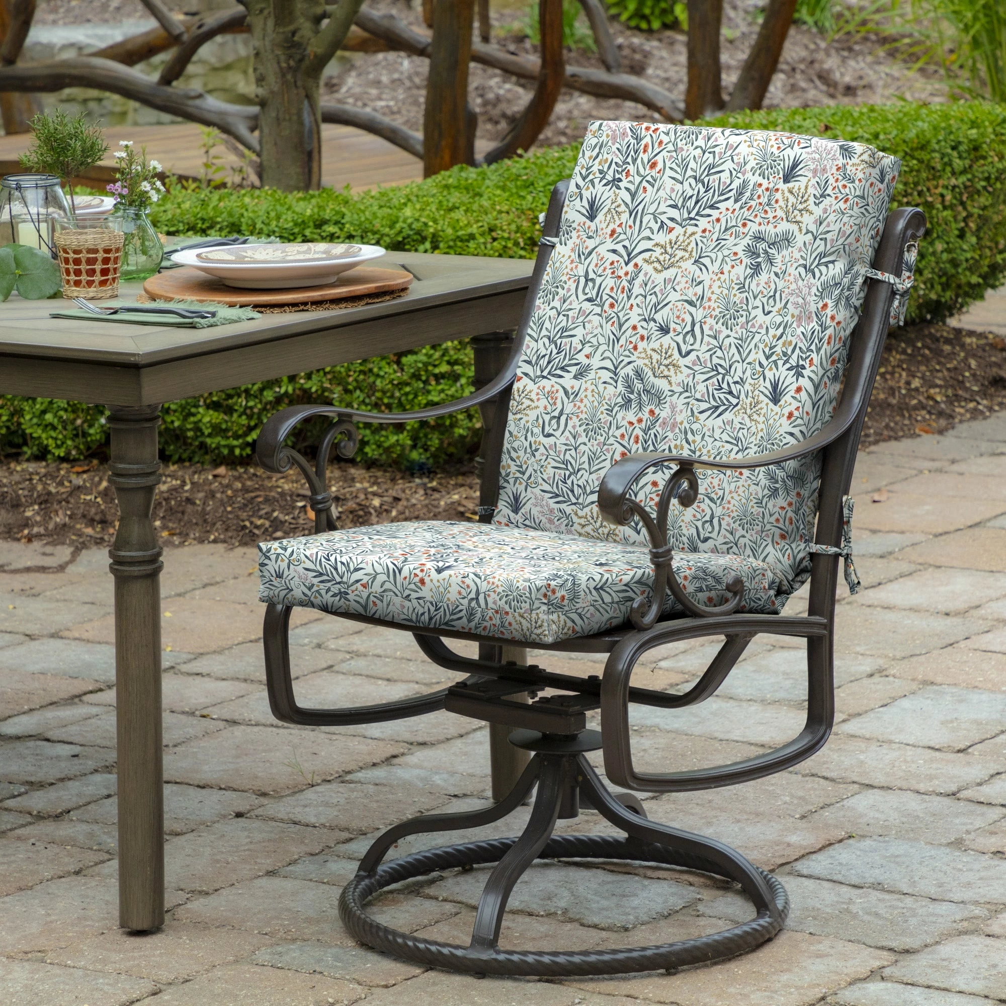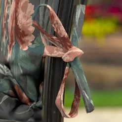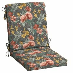 Bring style and comfort to your outdoor living area with this High Back Dining Seat Cushion. This high back patio cushion is 44″ inches long and 20″ inches wide. It is 3.5″ inches thick and has four sets of ties to secure it to the chair. Our EverTruยฎ Printed Polyester outdoor fabric is fade resistant and offers easy cleaning with just soap and water. Inside this outdoor cushion is patented 100% EverLuxe polyester fiberfill to help it retain shape and provide long-lasting comfort during outdoor use. Fibers within are oriented in a vertical position, which provides structure and springing replacement patio cushions. This outdoor cushion is UV treated and is intended for use on your patio or deck; however, we recommend bringing it indoors when it rains or when not in use to preserve its lifespan and keep it looking beautiful.ย