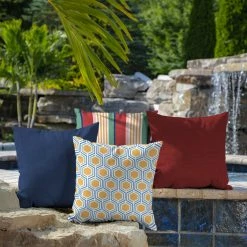 The Arden Selections Outdoor Throw Pillow, set of 2 is the perfect way to add a pop of color and personality to any outdoor furniture or cushions. These 2 packs of pillows come in a wide variety of colors and patterns, so you can mix and match them in any way to put your personal touch on your outdoor furniture set. Each pillow measures 16″W x 16″L x 5″T and has a clean, knife-edge seam that creates a simple and modern look. ย The durable, weather-resistant polyester fabric ensures vibrant colors through the season and offers easy cleaning with just soap and water. We use 100% polyester fill inside our outdoor pillows to help retain shape and maintain long-lastingโฏcomfortโฏand supportโฏduring outdoor use.โฏโฏ ย This outdoor pillows are UV treated and are intended for use on your patio or deck, however we recommend bringing them indoors when it rains or when not in use to preserve their lifespan and keep them looking beautiful.