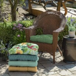 Make your outdoor wicker furniture a comfortable place to chill out when you add these seat cushions filled with polyester blowfill, which offers a luxurious look and feel. The weather-resistant, UV-treated polyester fabric retains its good looks throughout the season, and the included ties help keep the cushions from slipping and sliding.