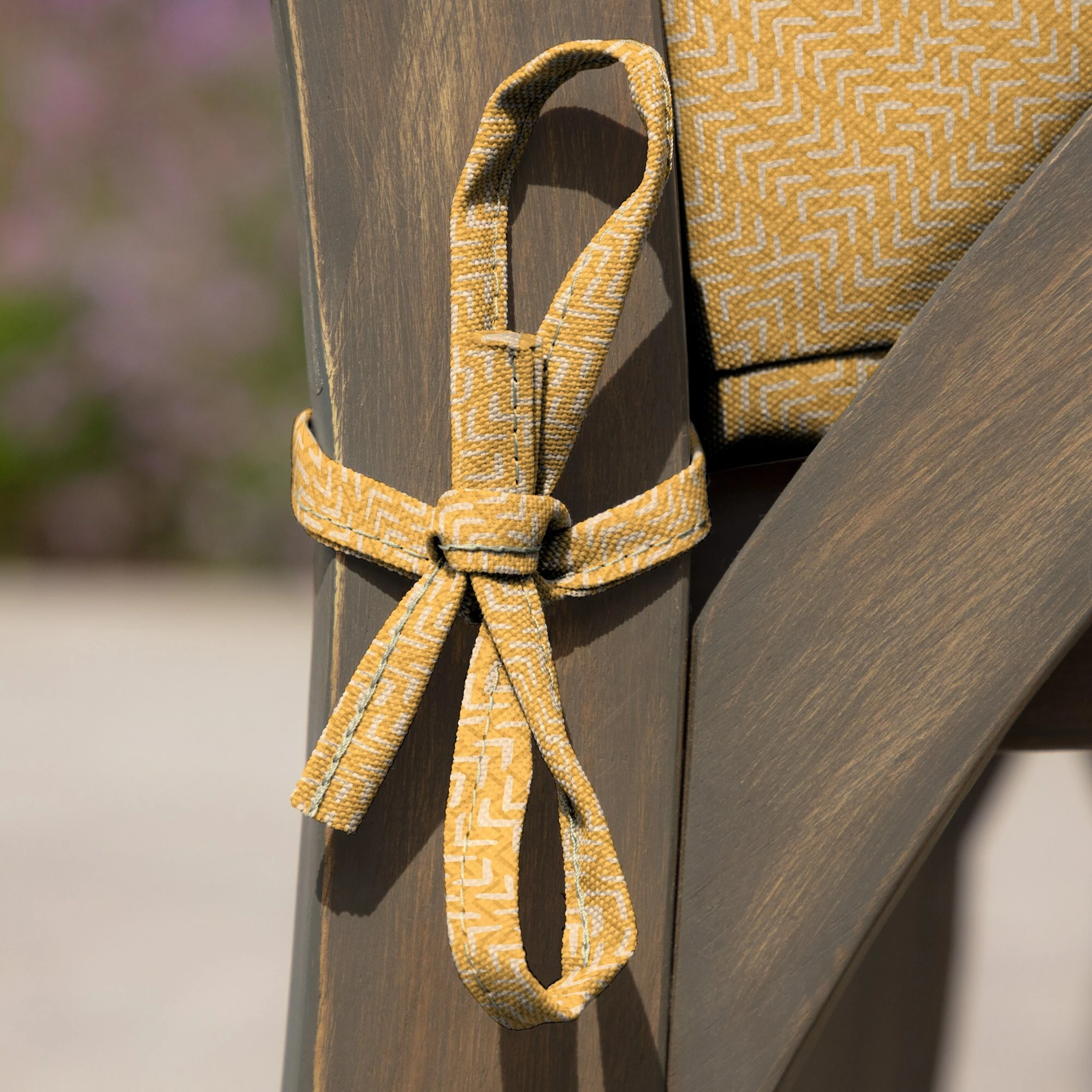 Are you looking for a way to bring your patio to life? Enhance your outdoor space with the addition of this Arden Selections Outdoor Seat Cushion? This outdoor patio cushions is 19″ L x 19″ W x 4″ H and features two sets of ties to secure it to your dining chair. Our EverTruยฎ Printed Polyester outdoor fabric is fade resistant and offers easy cleaning with just soap and water. Inside this outdoor cushion is patented 100% EverLuxe polyester fiberfill to help it retain shape and provide long-lasting comfort during outdoor use. Fibers within are oriented in a vertical position, which provides structure and springing replacement patio cushions. This outdoor cushion is UV treated and is intended for use on your patio or deck; however, we recommend bringing it indoors when it rains or when not in use to preserve its lifespan and keep it looking beautiful.ย
