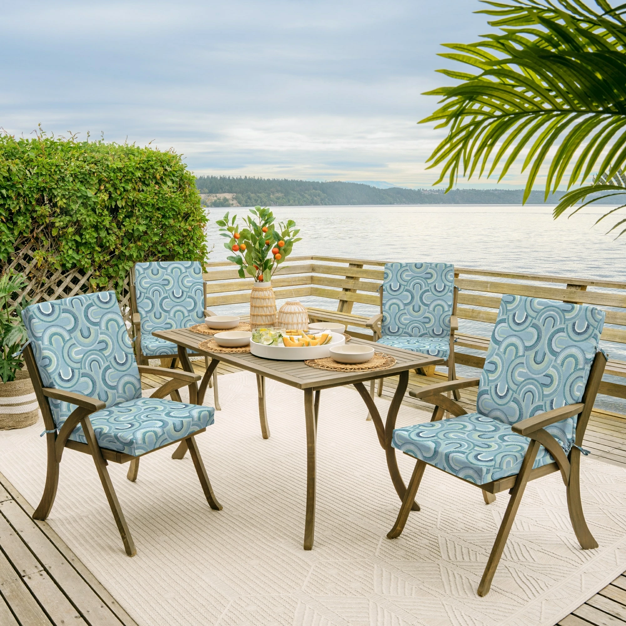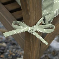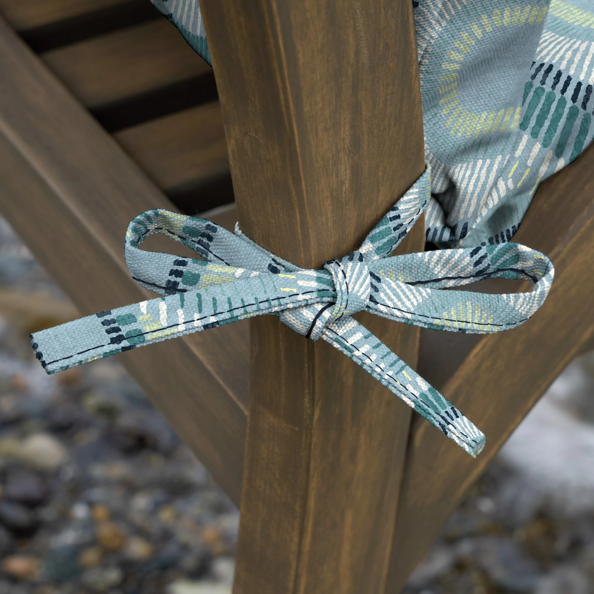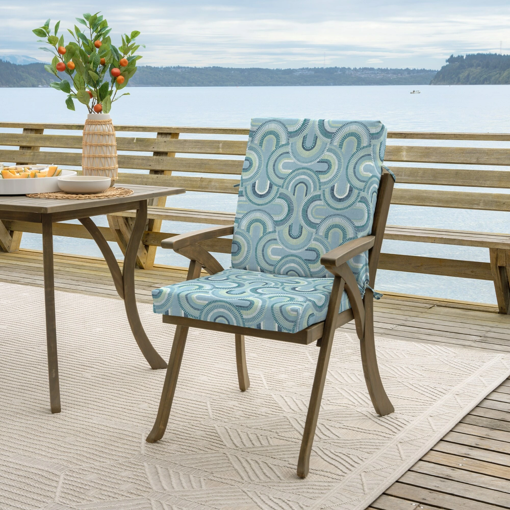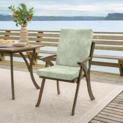 Bring style and comfort to your outdoor living area with this Dining Seat Cushion. This high back patio cushion is 44″ inches long and 20″ inches wide. It is 3.5″ inches thick and has four sets of ties to secure it to the chair. Our EverTruยฎ Printed Polyester outdoor fabric is fade resistant and offers easy cleaning with just soap and water. Inside this outdoor cushion is patented 100% EverLuxe polyester fiberfill to help it retain shape and provide long-lasting comfort during outdoor use. This outdoor cushion is UV treated and is intended for use on your patio or deck; however, we recommend bringing it indoors when it rains or when not in use to preserve its lifespan and keep it looking beautiful.