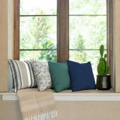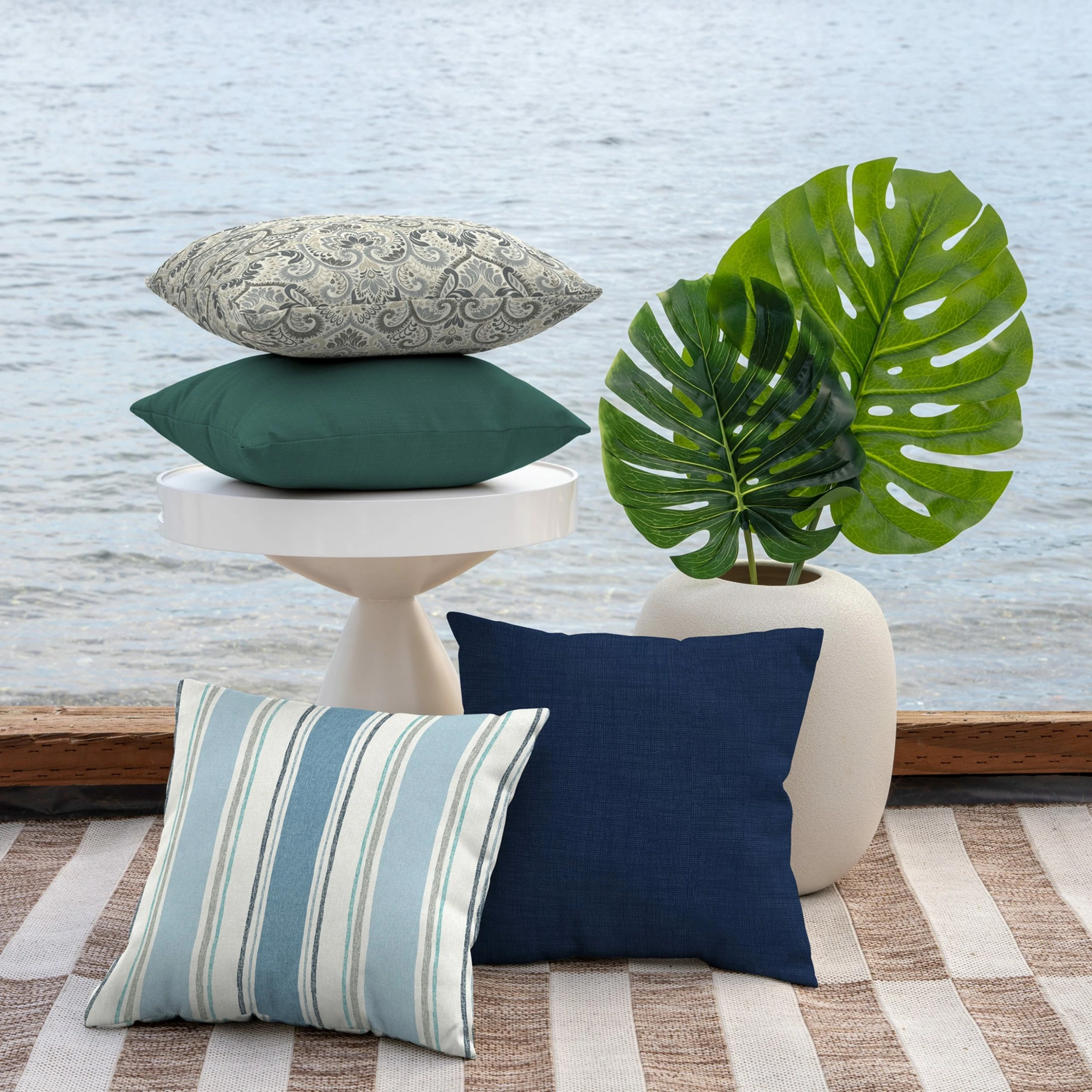 The Arden Selections Outdoor Throw Pillow, set of 2 is the perfect way to add a pop of color and personality to any outdoor furniture or cushions. These 2 packs of pillows come in a wide variety of colors and patterns, so you can mix and match them in any way to put your personal touch on your outdoor furniture set. Each pillow measures 16″W x 16″L x 5″T and has a clean, knife-edge seam that creates a simple and modern look.The durable, weather-resistant polyester fabric ensures vibrant colors through the season and offers easy cleaning with just soap and water. We use 100% polyester fill inside our outdoor pillows to help retain shape and maintain long-lasting comfort and support during outdoor use. This outdoor pillows are UV treated and are intended for use on your patio or deck, however we recommend bringing them indoors when it rains or when not in use to preserve their lifespan and keep them looking beautiful.