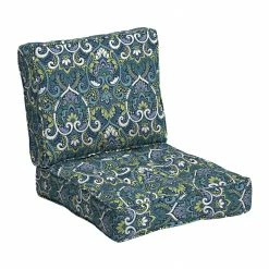 The Arden Selections Plush PolyFill Collection pairs soft polyfiber fill with long-lasting outdoor polyester fabric to create an ultra-comfortable outdoor patio cushion. Made from 100% recycled plastic bottles, the polyfiber fill provides an environmentally friendly and durable option for your backyard patio. This outdoor deep seat cushion set includes 1 back cushion and 1 bottom cushion with the following dimensions: Back – 19 in H x 24 in W x 8 in T, Bottom – 24 in L x 24 in W x 6 in T. The 100% printed polyester outdoor fabric features high UV pigments to protect from ultraviolet rays and resist fading, so your outdoor patio cushion looks vibrant for longer. Water protection helps your patio cushion withstand continued outdoor use, while easy cleaning with just soap and water ensures upkeep is low maintenance. Although this outdoor patio cushion is both water and UV-resistant, we recommend bringing it indoors when it rains or when not in use to preserve its lifespan and keep it looking beautiful.