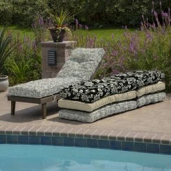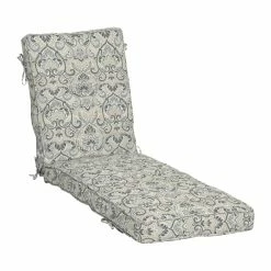The Arden Selections Plush PolyFill Collection pairs soft polyfiber fill with long-lasting outdoor polyester fabric to create an ultra-comfortable outdoor chaise cushion. This outdoor chaise lounge cushion has the following dimensions: Back – 30 in H x 22 in W x 6.5 in T, Seat – 46 in L x 22 in W x 6.5 in T. The 100% printed polyester outdoor fabric features high UV pigments to protect from ultraviolet rays and resist fading, so your outdoor chaise cushion looks vibrant for longer. Water protection helps your chaise patio cushion withstand continued outdoor use, while easy cleaning with just soap and water ensures upkeep is low maintenance. Six sets of ties secure the outdoor chaise cushion firmly in place, while 4 buttons add a decorative touch. Inside this outdoor chaise cushion is 100% polyfiber Plush PolyFill to help it retain shape and provide long-lasting comfort during outdoor use. Made from 100% recycled plastic bottles, the polyfiber fill provides an environmentally friendly and durable option for your backyard patio. Although this chaise patio cushion is both water and UV-resistant, we recommend bringing it indoors when it rains or when not in use to preserve its lifespan and keep it looking beautiful.