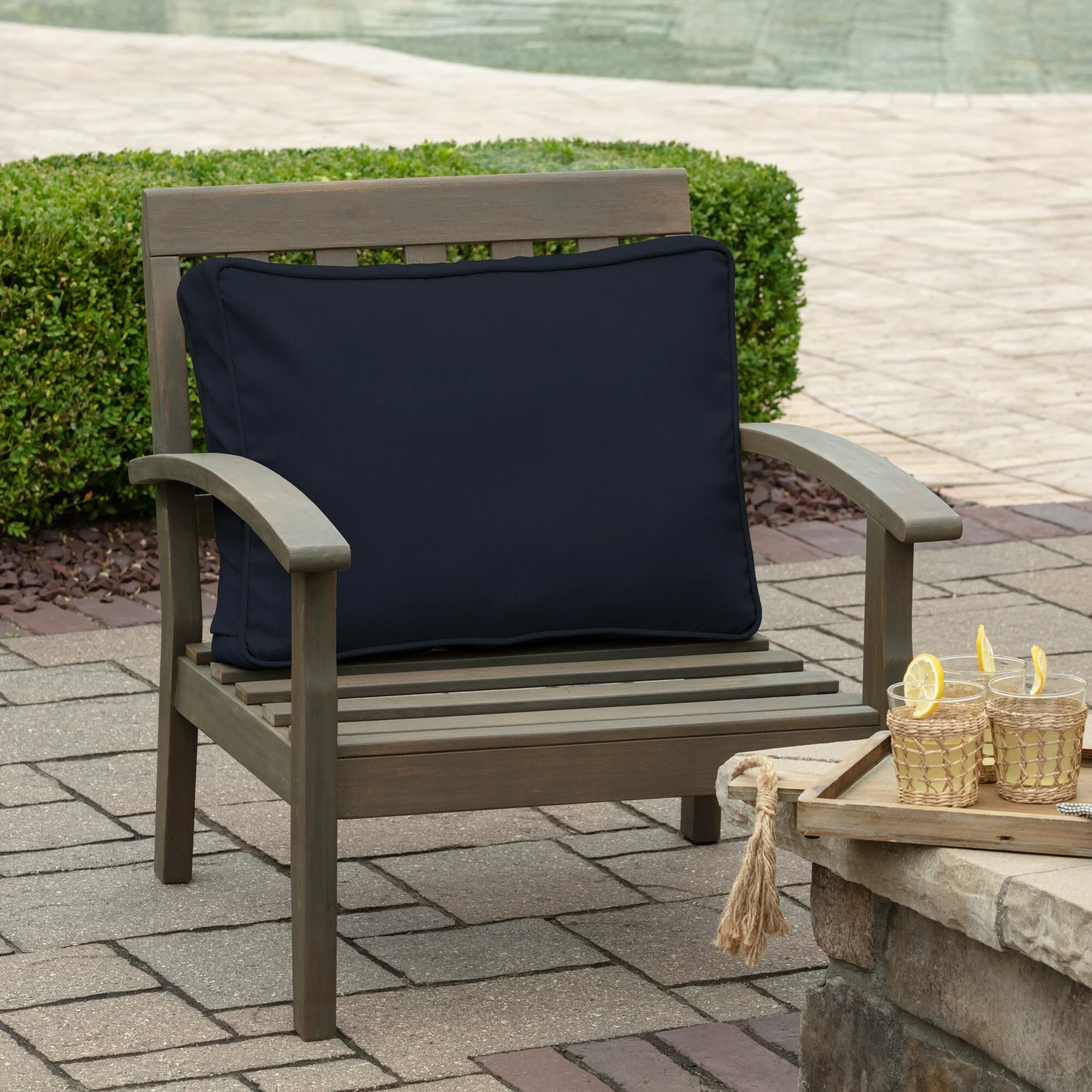 This Arden Selections ProFoam Essentials Outdoor Deep Seat Back Cushion Cover features 100% solution dyed acrylic fabric that is weather and UV resistant. This cover measures 19″ deep x 22″ wide x 3.5″ thick. EverTru Acrylic fabric resists fading and repels water and stains. The extended UV protection means your fabric will continue looking brighter longer as you enjoy your hours outdoors and comes with a 5-year limited fabric warranty. The proprietary EverBloc stain and water protection ensure optimum outdoor functionality, with easy spot cleaning with soap and water, or a mixture of bleach and water for harsh stains. Arden Selections ProFoam comes in a variety of colors and styles, all with easy to use extra long zippers that make changing your cushion a breeze. Look for our other Arden Selections ProFoam cushion styles to fit all your outdoor furniture needs.