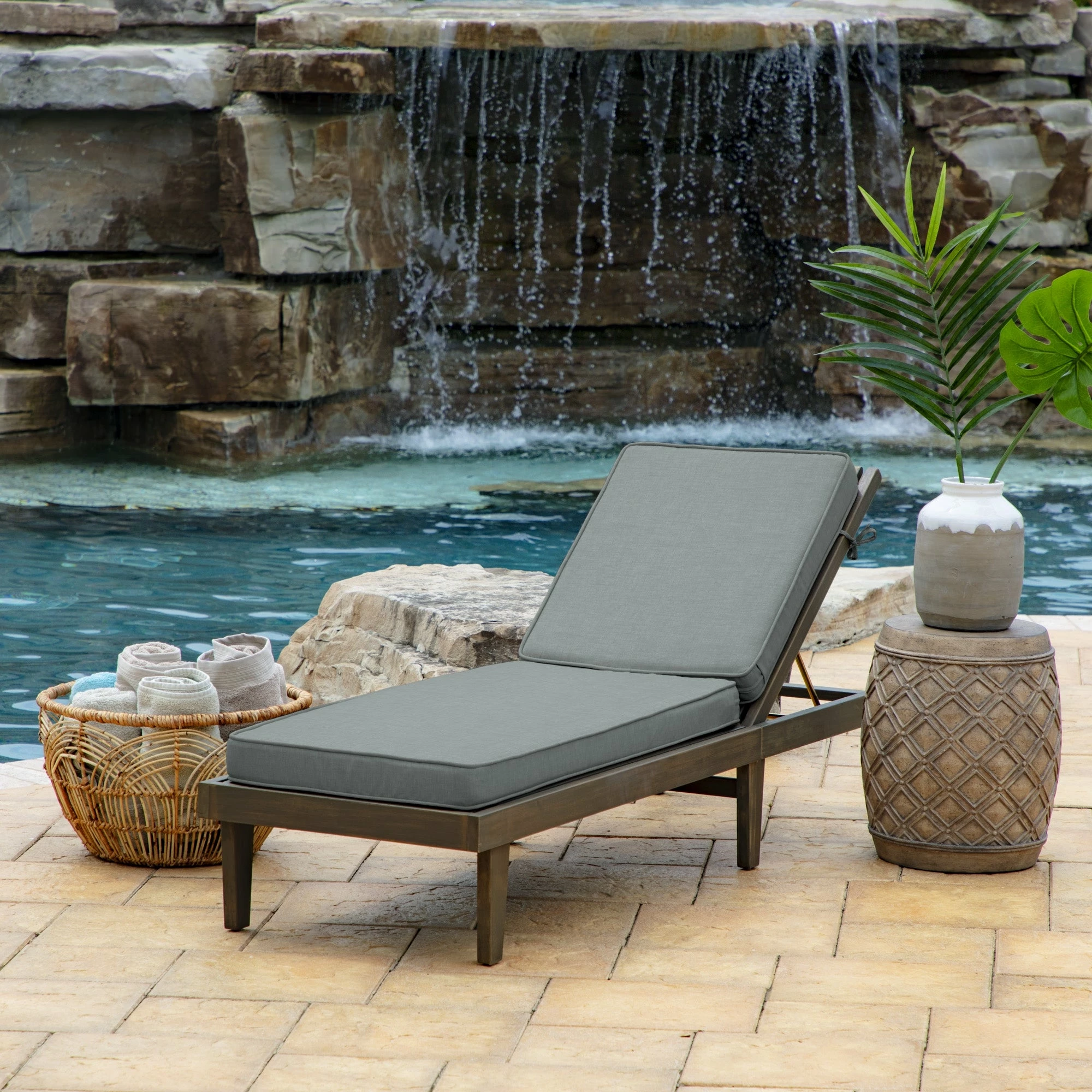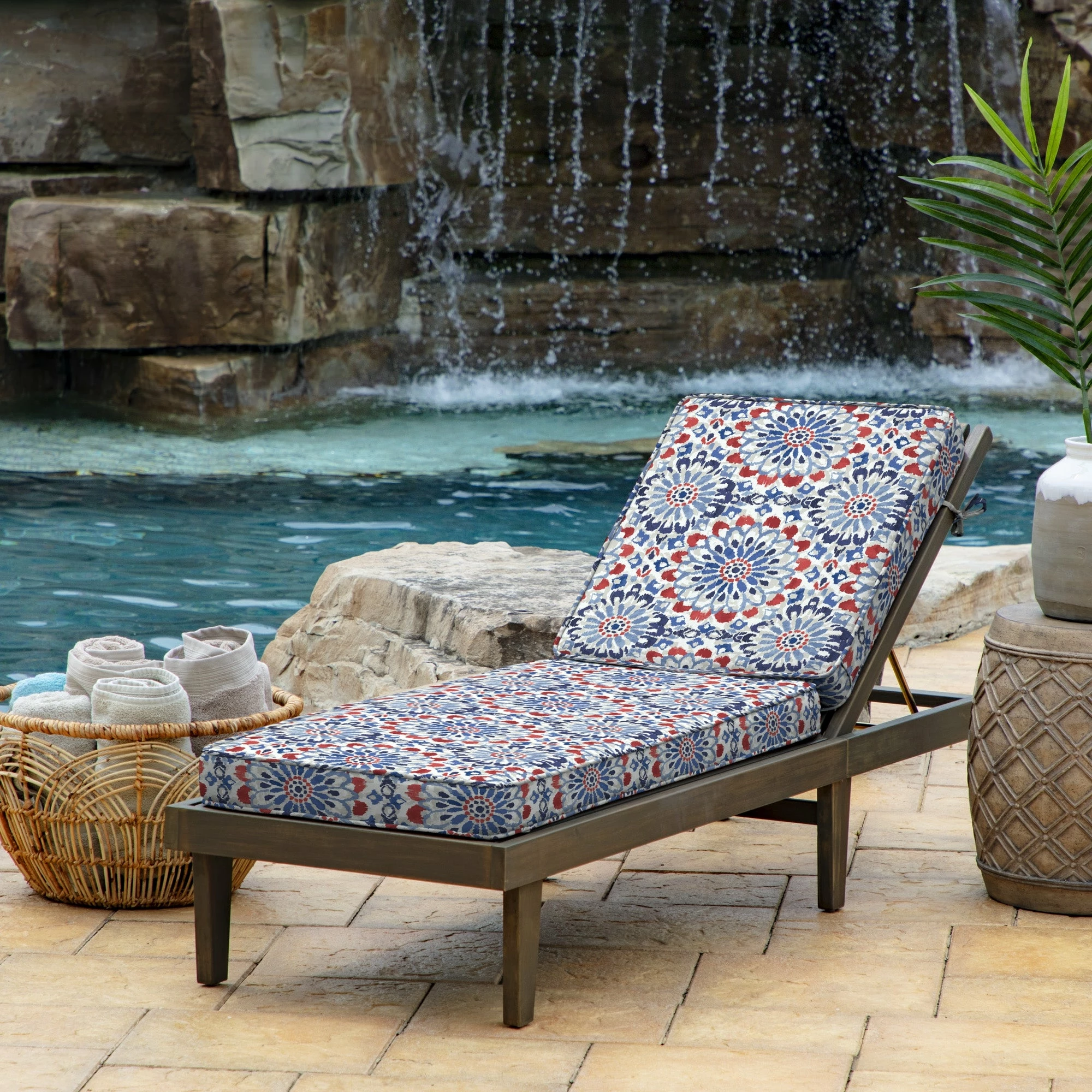 This Arden Selections ProFoam Essentials Outdoor Chaise Lounge Cushion Cover features durable, UV resistant printed 100% polyester fabric, which resists fading and is easily removed for frequent Cushion Cover changes without replacing your entire cushion. This cover measures 72″ deep x 21″ wide x 3.5″ thick. With the clean finish of the piping and two sets of ties to hold it in place, the Arden Selections ProFoam covers come in a variety of colors and styles, all with easy to use extra long zippers that make changing your Cushion Covers for a refreshed look a breeze. Look for our other Arden Selections ProFoam Cushion Cover styles to fit all your outdoor furniture needs.