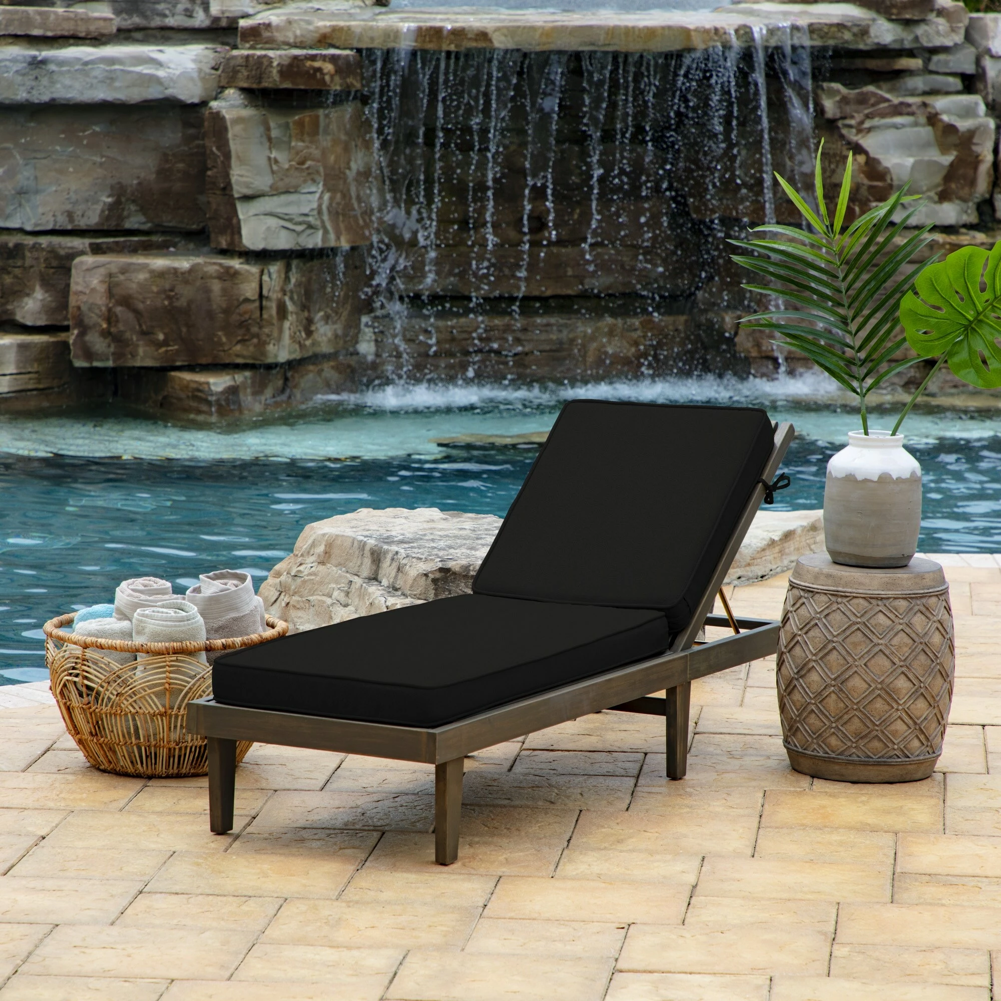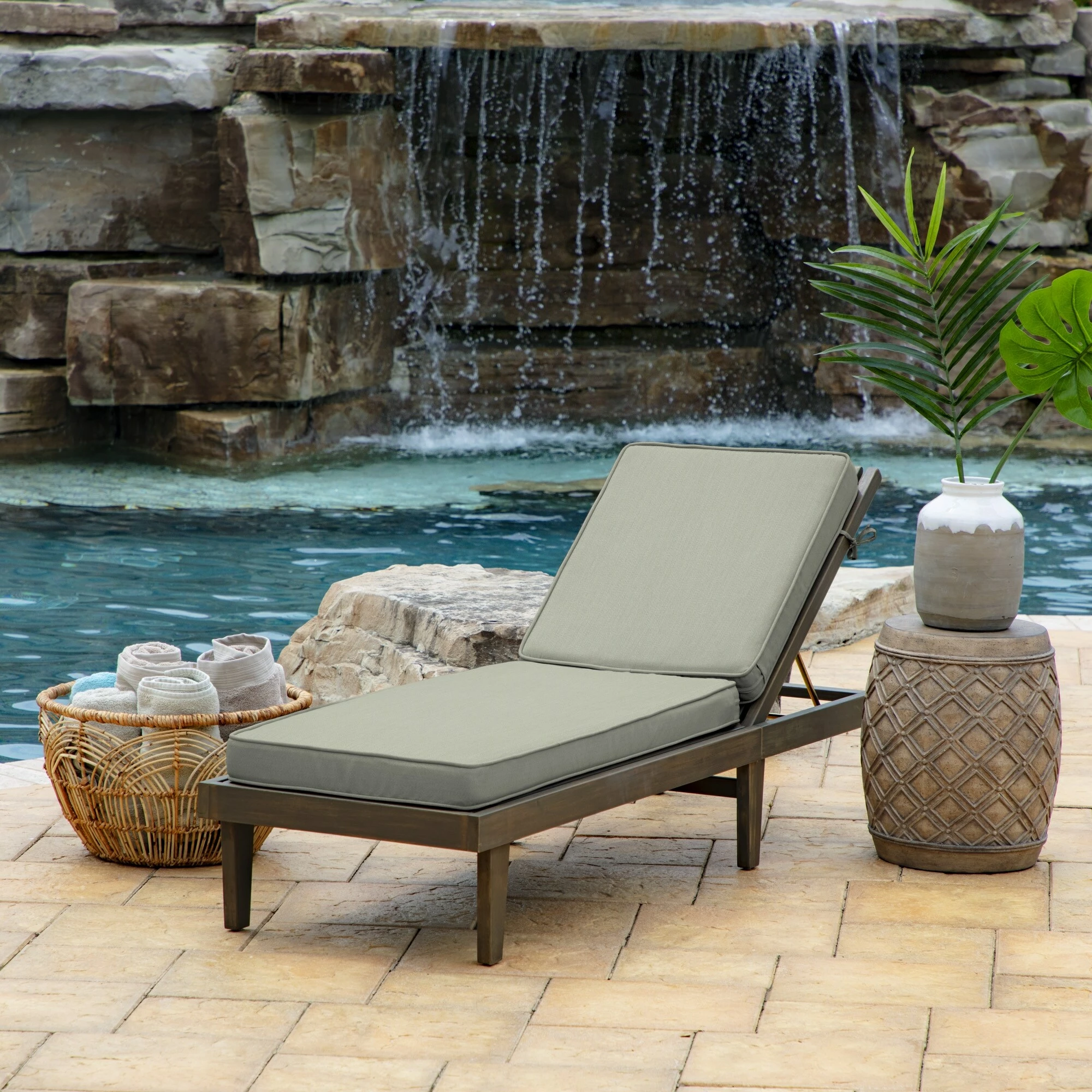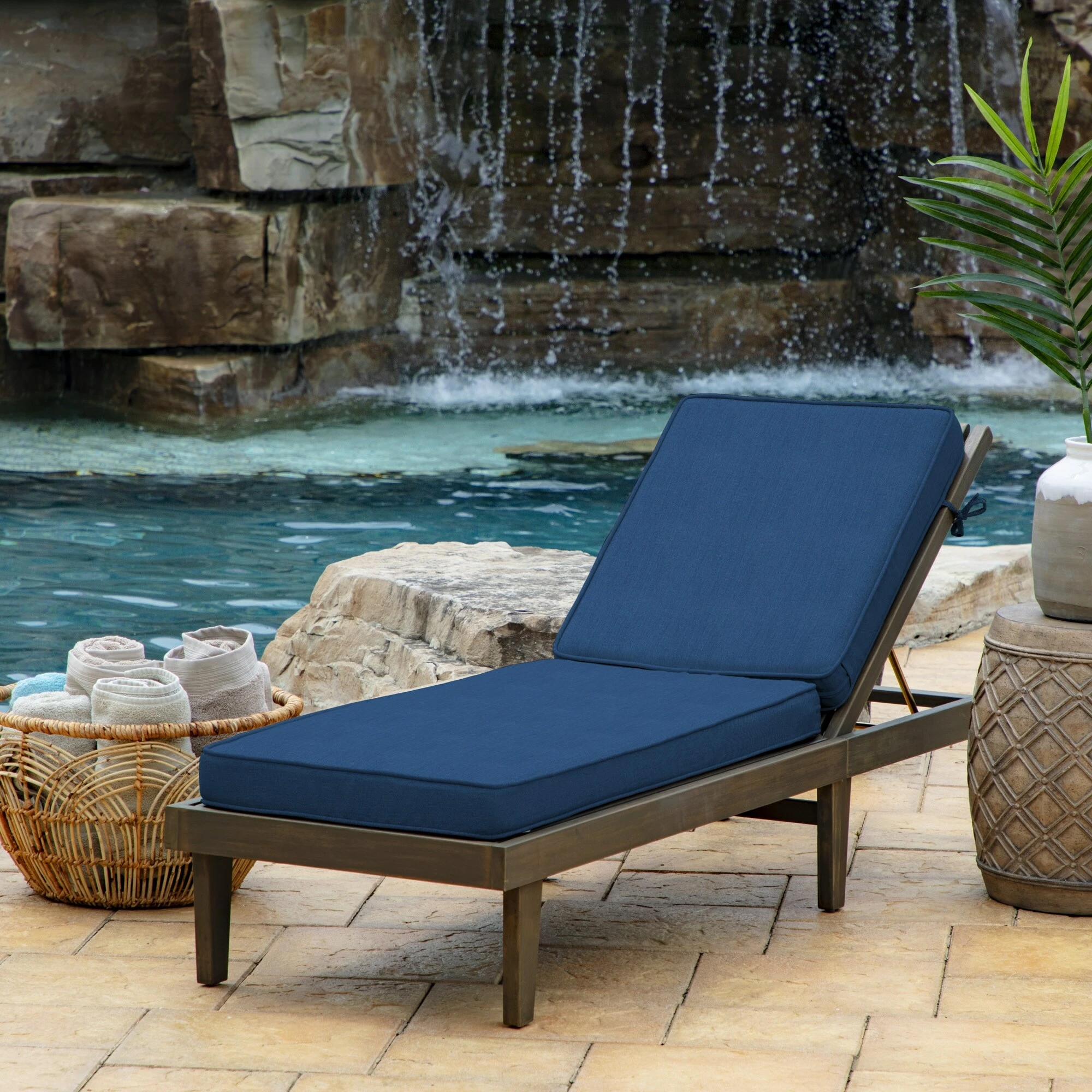 This Arden Selections ProFoam Essentials Outdoor Chaise Lounge Cushion Cover features 100% solution dyed acrylic fabric that is weather and UV resistant. This cover measures 72″ deep x 21″ wide x 3.5″ thick. EverTru Acrylic fabric resists fading and repels water and stains. The extended UV protection means your fabric will continue looking brighter longer as you enjoy your hours outdoors and comes with a 5-year limited fabric warranty. The proprietary EverBloc stain and water protection ensure optimum outdoor functionality, with easy spot cleaning with soap and water, or a mixture of bleach and water for harsh stains. Arden Selections ProFoam comes in a variety of colors and styles, all with easy to use extra long zippers that make changing your cushion a breeze. Look for our other Arden Selections ProFoam cushion styles to fit all your outdoor furniture needs.