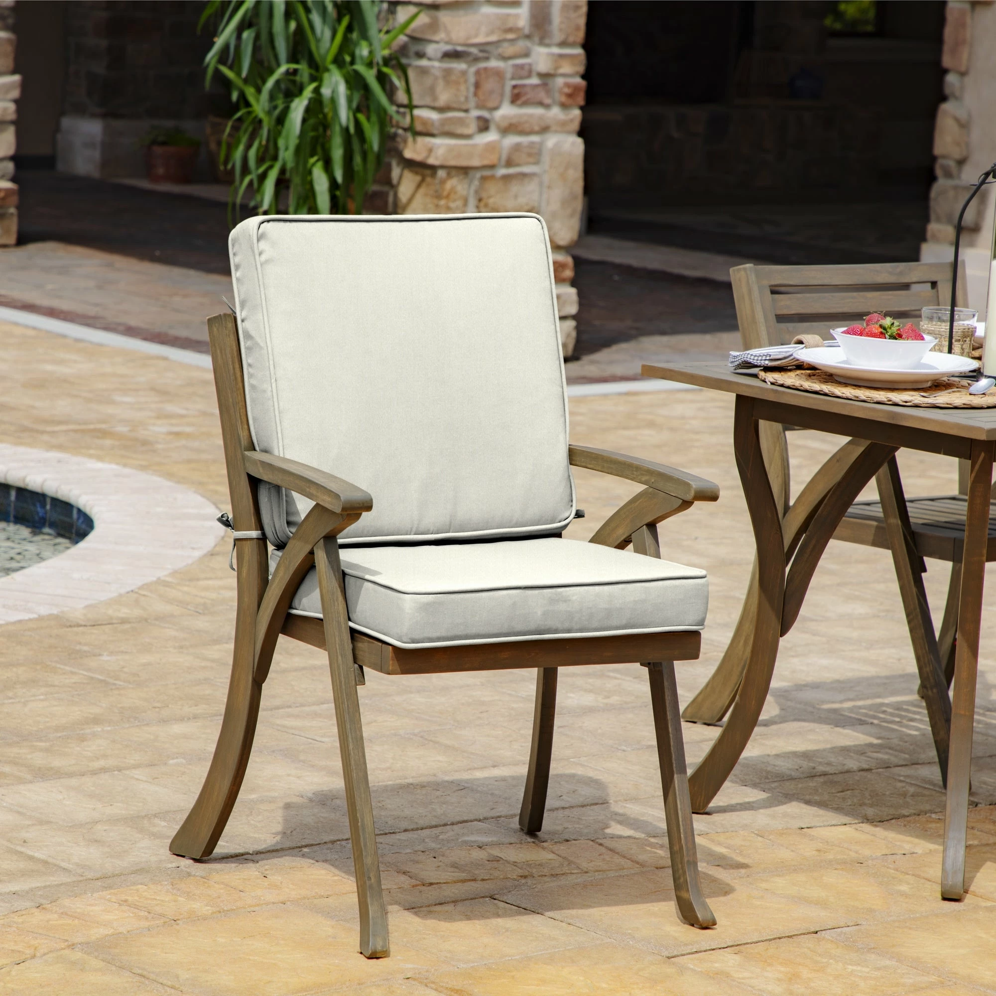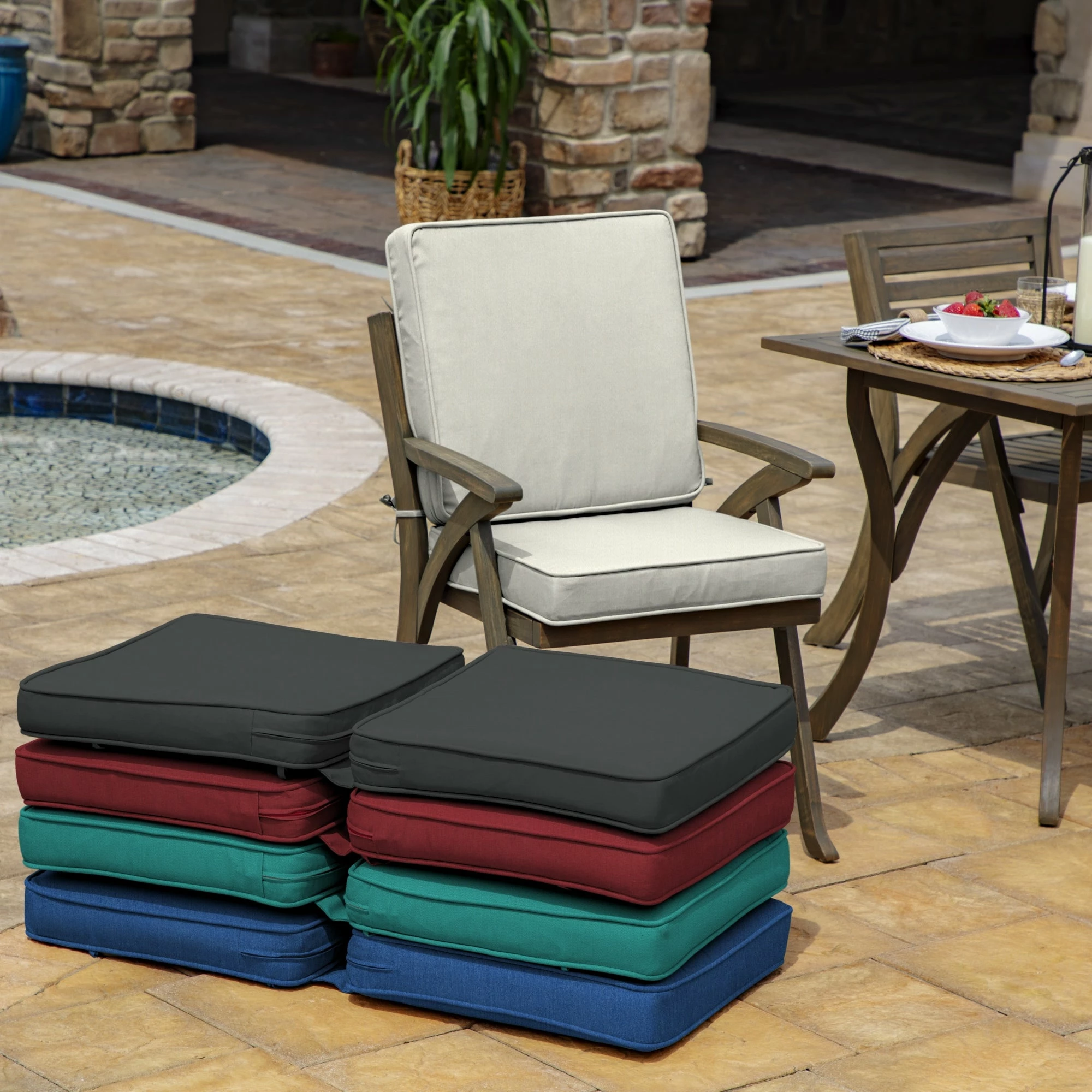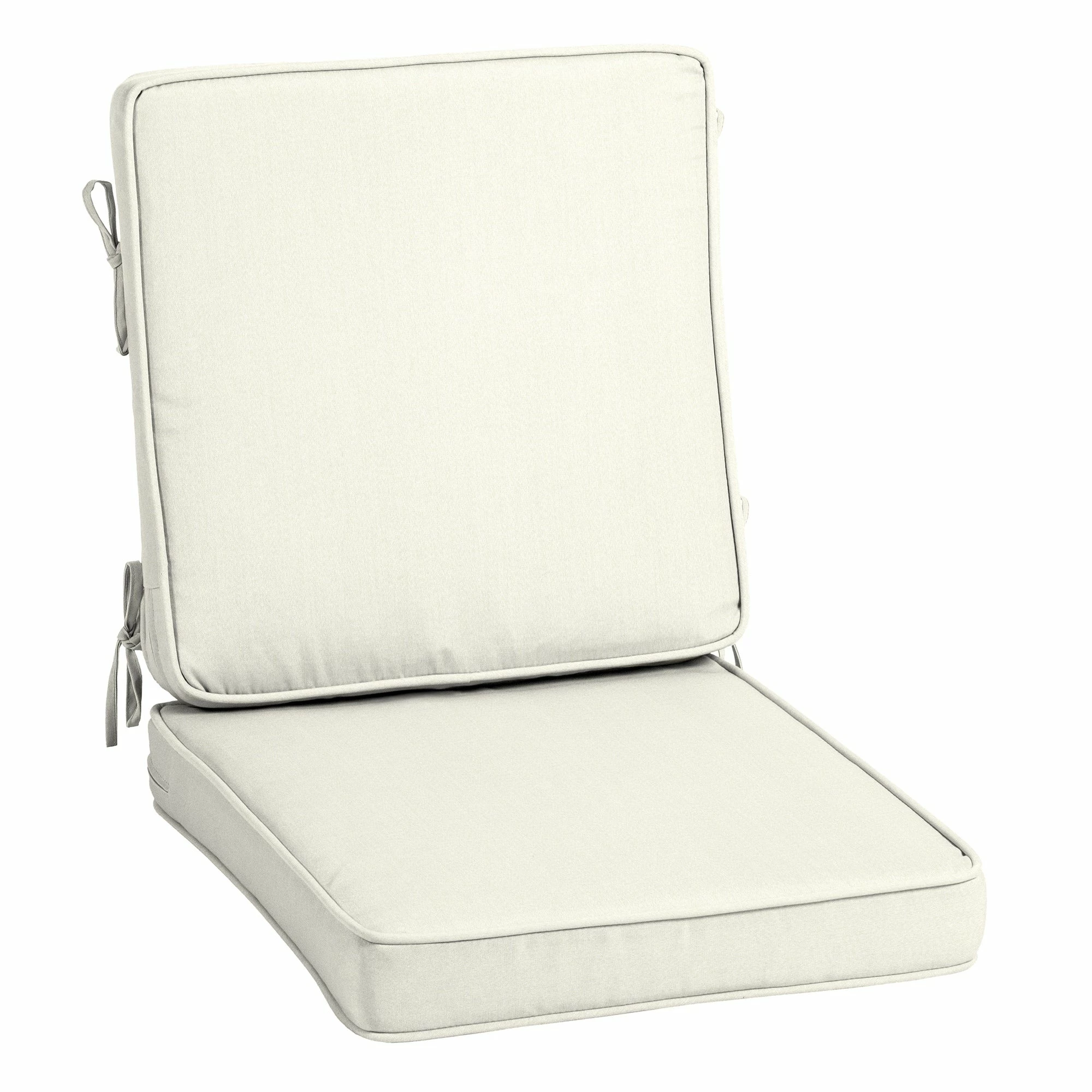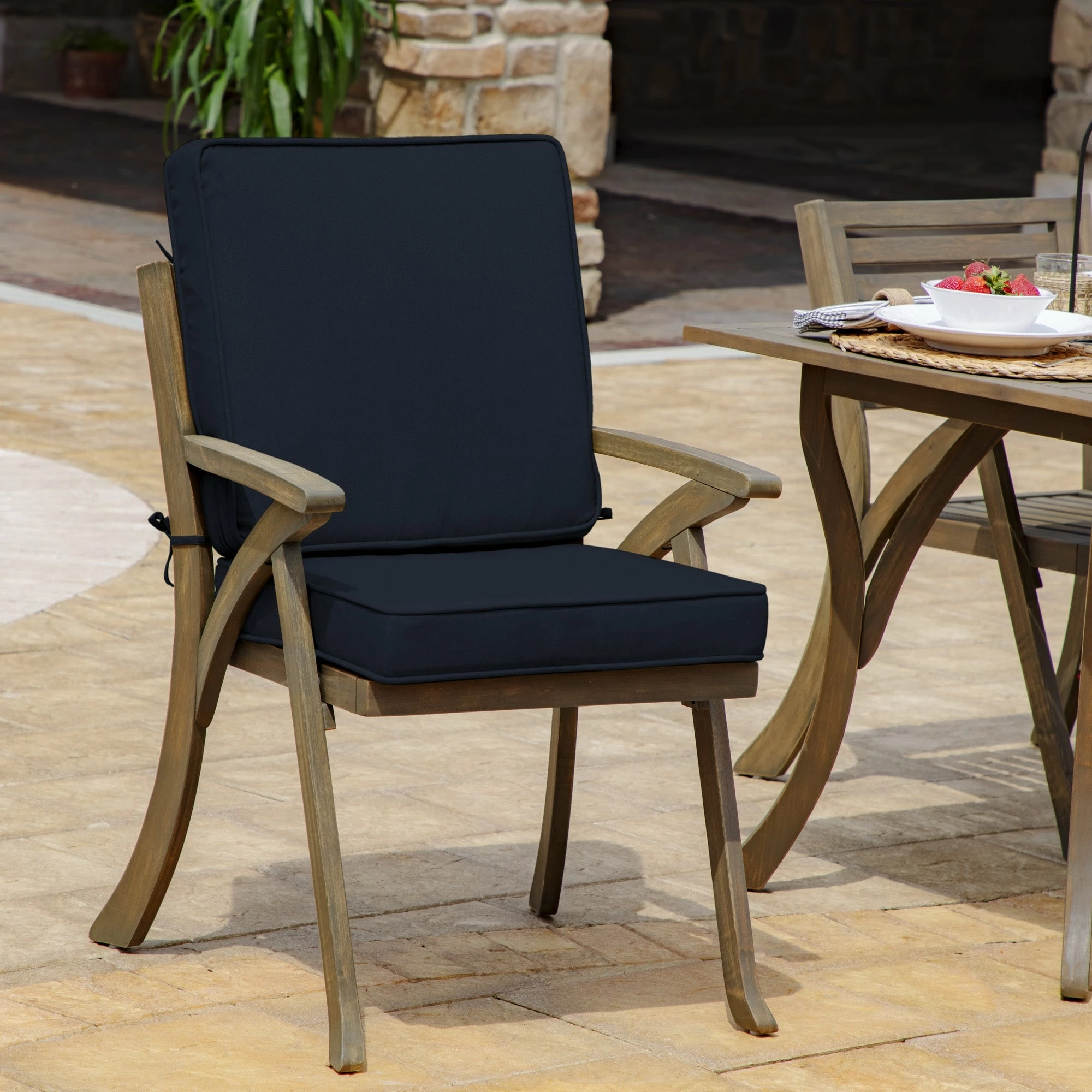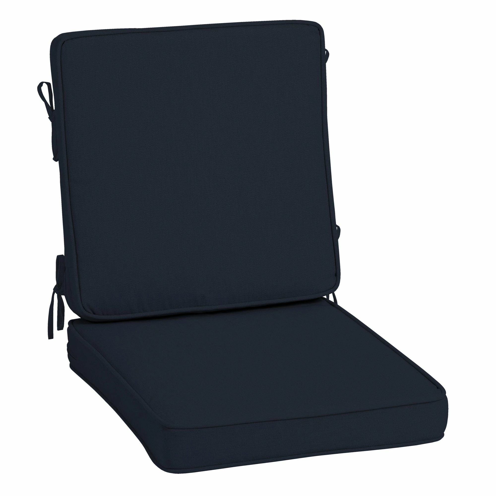 This Arden Selections ProFoam Outdoor High Back Dining Chair Cushion is made with the same high-performance, long-lasting, durable foam that came with your outdoor furniture set. These firm, yet comfortable outdoor foam patio cushions have a sleek and modern look, adding clean lines to refresh your outdoor furniture. The foam comes in a compressed roll to reduce shipping waste and easily slips into the provided cushion cover. With the clean finish of the piping and four sets of ties to hold it in place, this 100% solution dyed acrylic cushion cover features weather and UV resistant EverTru Acrylic fabric, which resists fading and repels water and stains. The extended UV protection means your fabric will continue looking brighter longer as you enjoy your hours outdoors and comes with a 5-year limited fabric warranty. The proprietary EverBloc stain and water protection ensure optimum outdoor functionality, with easy spot cleaning with soap and water, or a mixture of bleach and water for harsh stains. Arden Selections ProFoam comes in a variety of colors and styles, all with easy to use extra long zippers that make changing your cushion a breeze. Look for our other Arden Selections ProFoam cushion styles to fit all your outdoor furniture needs.