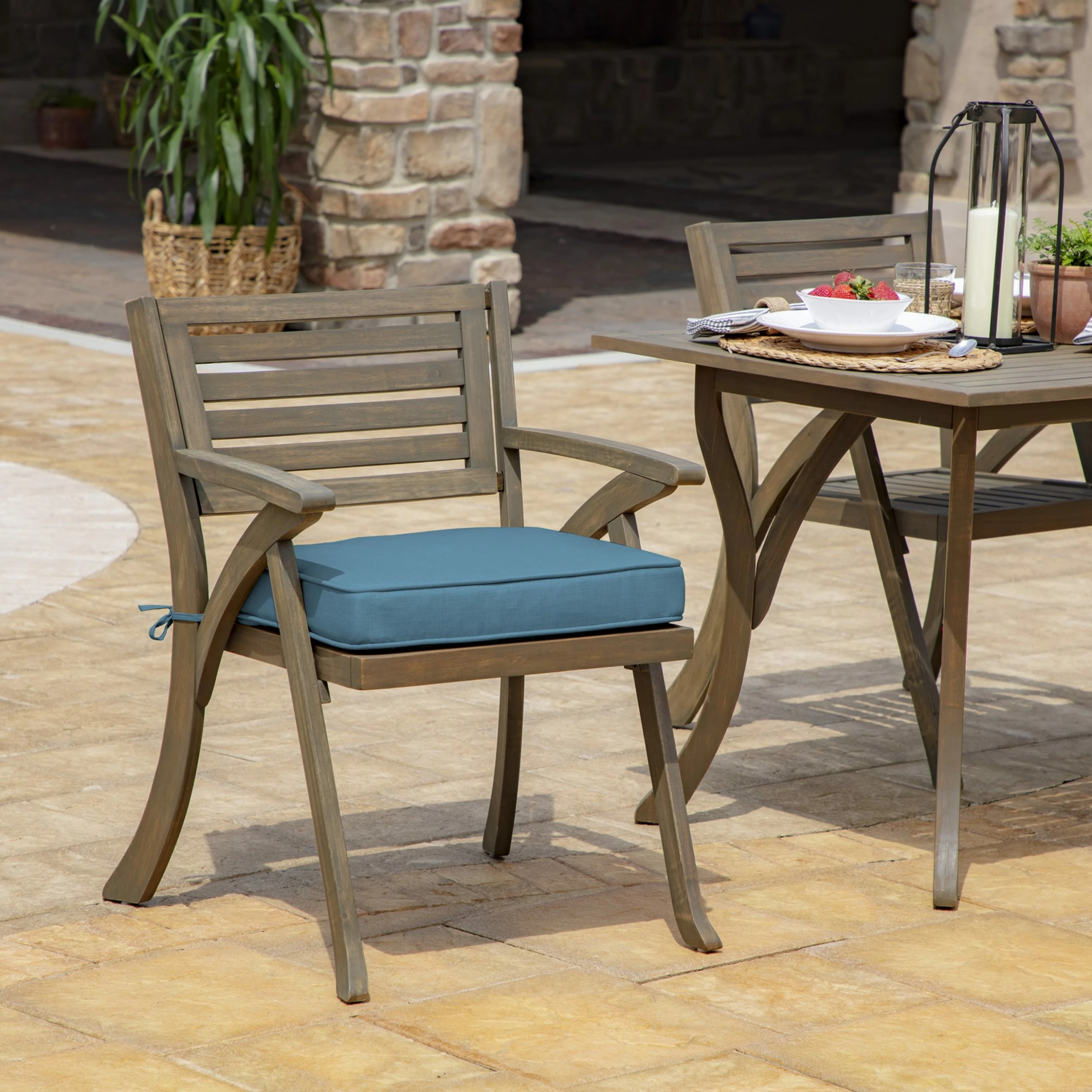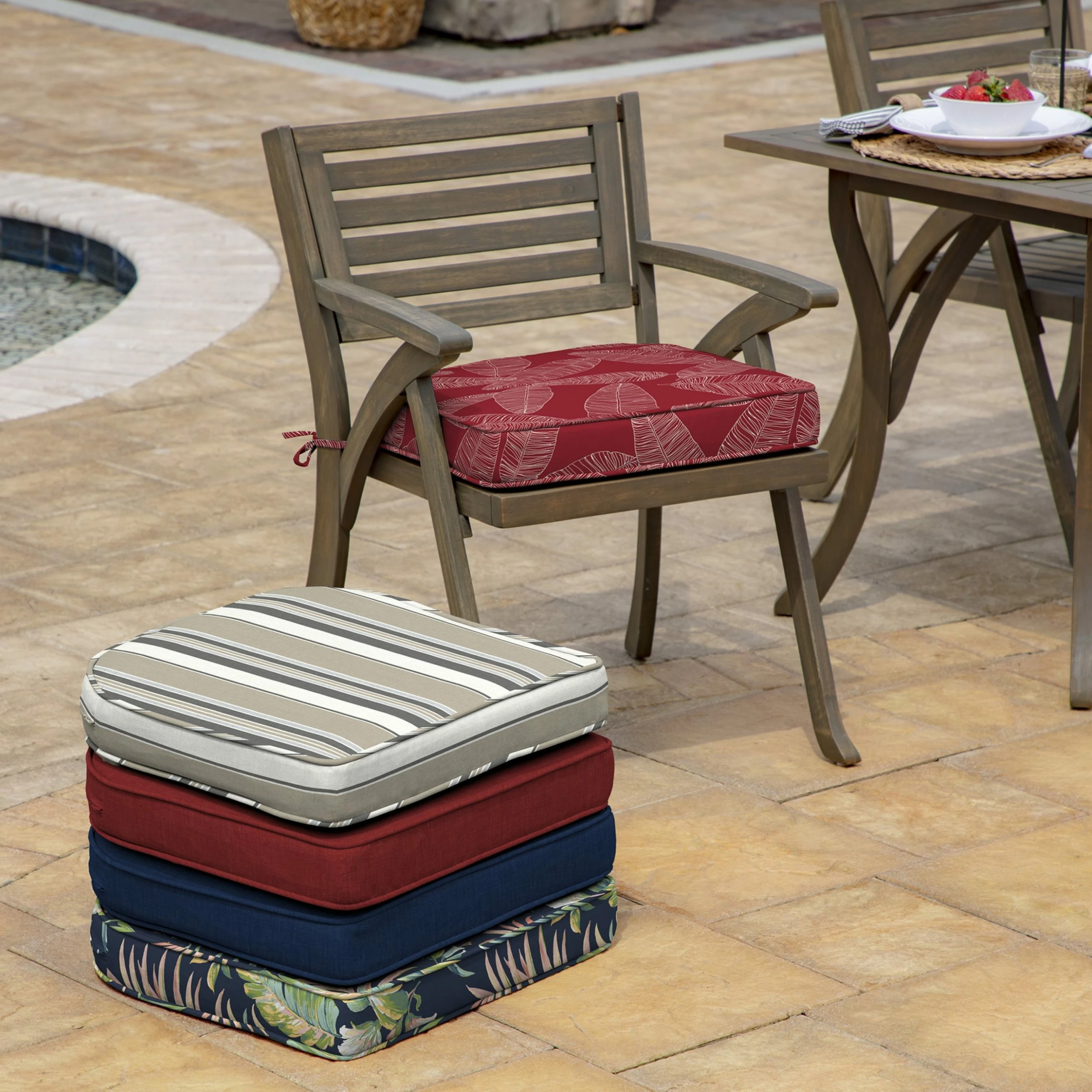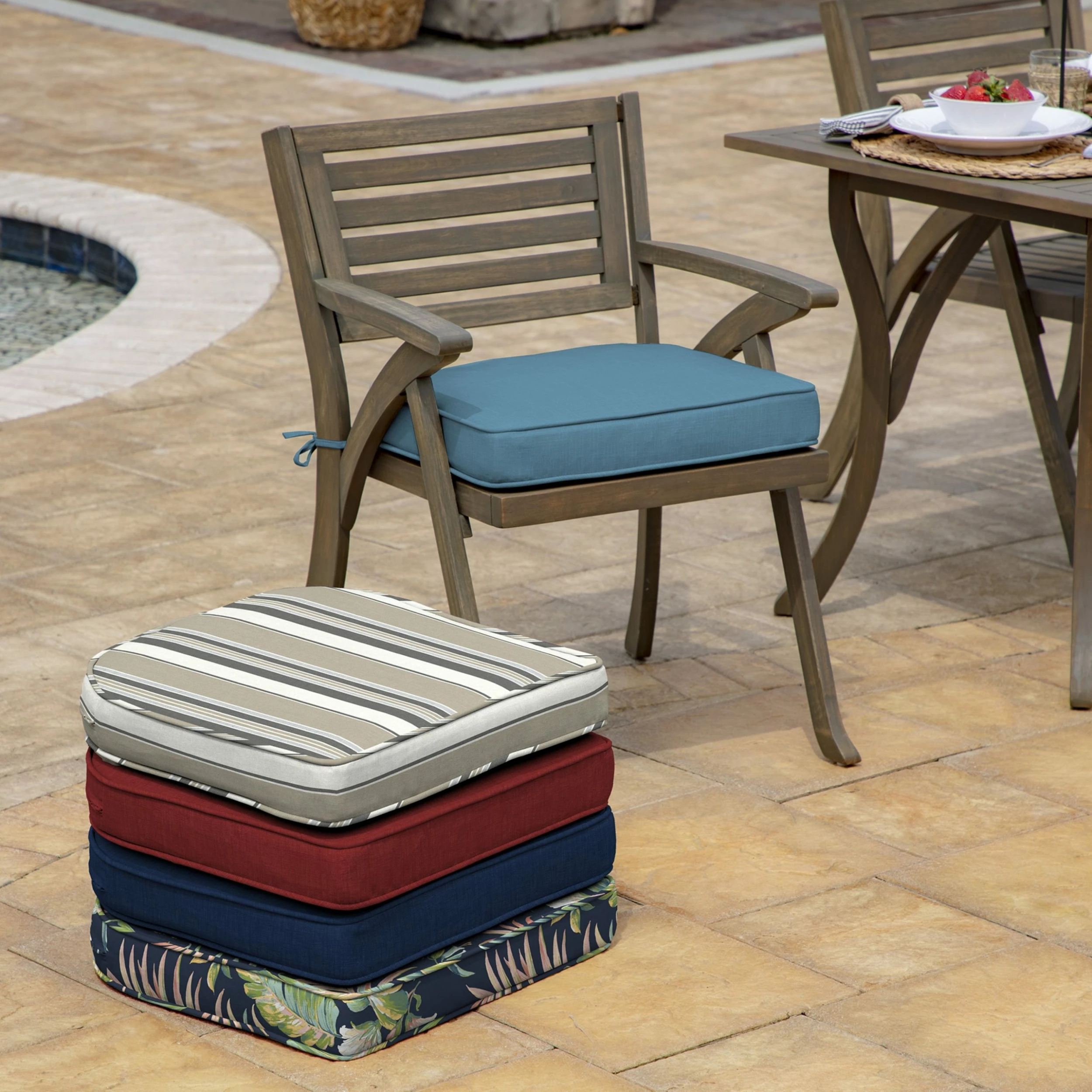 This Arden Selections ProFoam Essentials Rounded Back Outdoor Dining Seat Cushion is made with the same high-performance, long-lasting, durable foam that came with your outdoor furniture set. These firm, yet comfortable outdoor foam patio cushions have a sleek and modern look, adding clean lines to refresh your outdoor furniture. The foam comes in a compressed roll to reduce shipping waste and easily slips into the provided cushion cover. With the clean finish of the piping and two sets of ties to hold it in place, the 100% polyester cushion cover features durable, UV resistant printed polyester fabric, which resists fading and is easily removed for frequent cushion cover changes without replacing your entire cushion. Arden Selections ProFoam comes in a variety of colors and styles, all with easy to use extra long zippers that make changing your cushion a breeze. Look for our other Arden Selections ProFoam cushion styles to fit all your outdoor furniture needs.