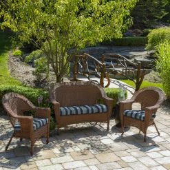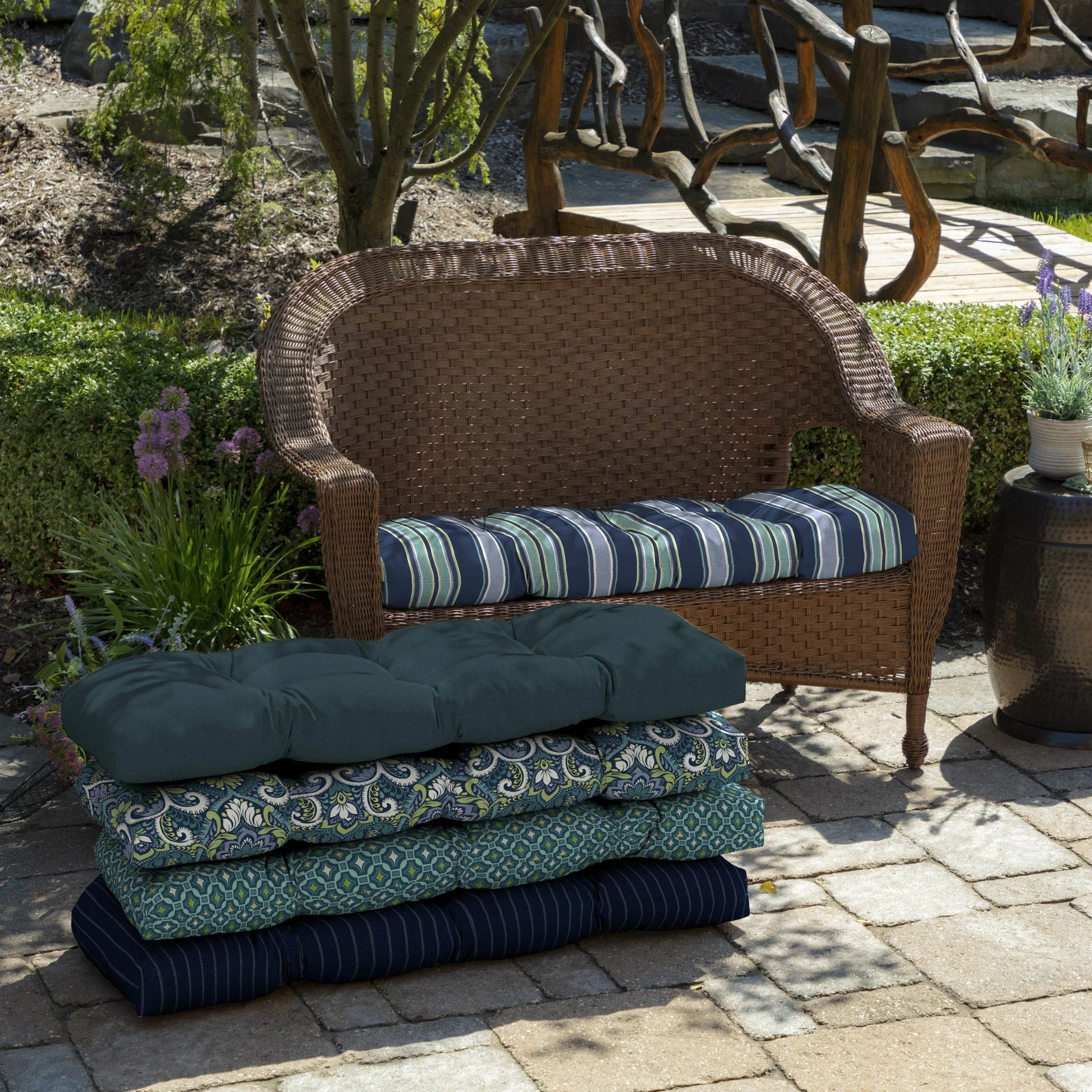 The Arden Selections Outdoor Wicker Settee Cushion will help put the finishing touches on your wicker settee or bench! This settee cushion features 6 tufts and is filled with durable polyester blowfill, which gives it a luxuriously full look and also allows you to fluff it up at any time. The cushion measure 41.5″W x 18″L x 5″T and has two sets of ties, allowing it to fit a variety of outdoor wicker settees and benches. Pair this cushion with Arden Selections wicker seat cushions in matching or coordinating colors to pull your entire wicker furniture set together.The durable, weather-resistant polyester fabric ensures vibrant colors through the season and offers easy cleaning with just soap and water. We use 100% polyester fill inside our wicker cushions to help retain shape and maintain long-lastingโฏcomfortโฏand supportโฏduring outdoor use.โฏโฏThis outdoor cushion is UV treated and is intended for use on your patio or deck, however we recommend bringing it indoors when it rains or when not in use to preserve its lifespan and keep it looking beautiful.Arden Companies warrants this product against defects in workmanship and materials for 1 year from date of purchase. Proof of purchase is required to obtain coverage under this Limited Warranty, and no warranty coverage is provided without proof of purchase. We may be contacted at [email protected].